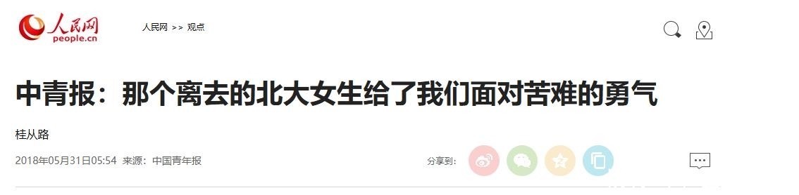 信息来源:人民网 2018-05-31——中青报:那个离去的北大女生给了我们面对苦难的勇气